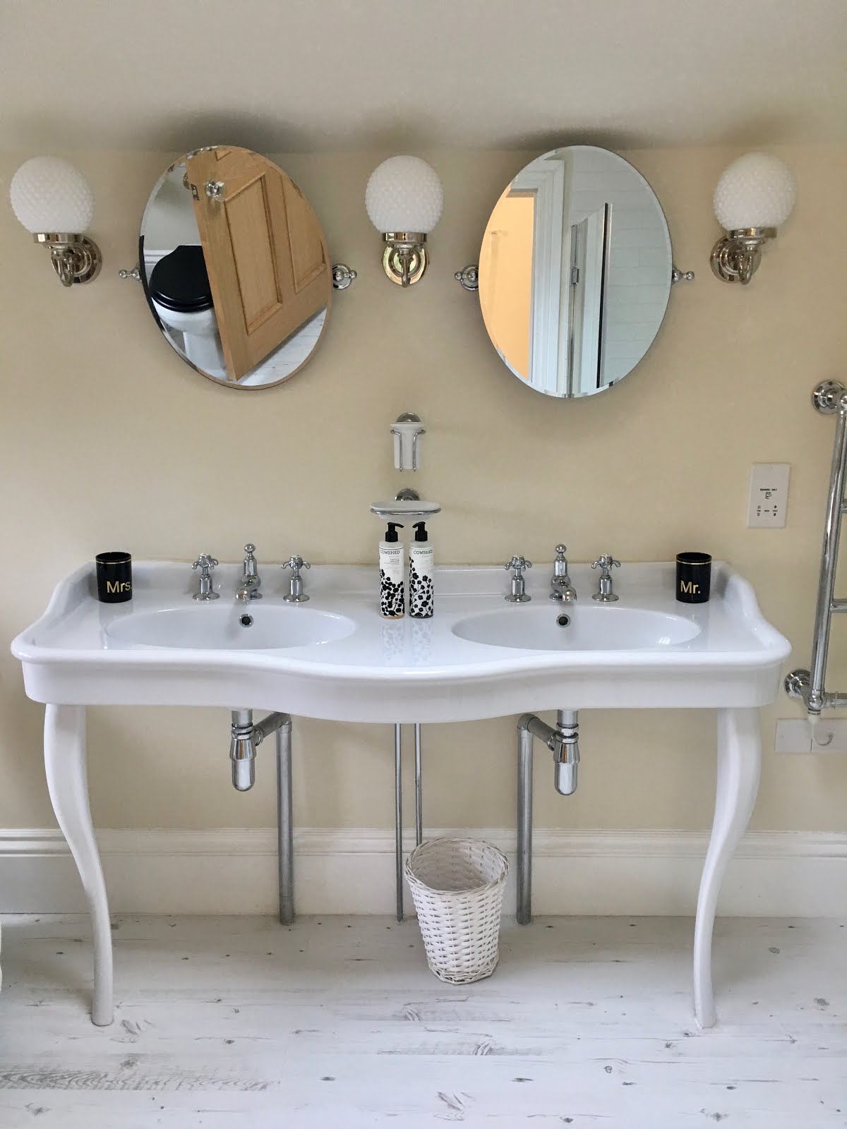 My favourite areas are the beautifully appointed en-suite bathrooms with the signature mix of new and vintage items and a few faux retro design elements thrown in such as the beautiful light fittings…