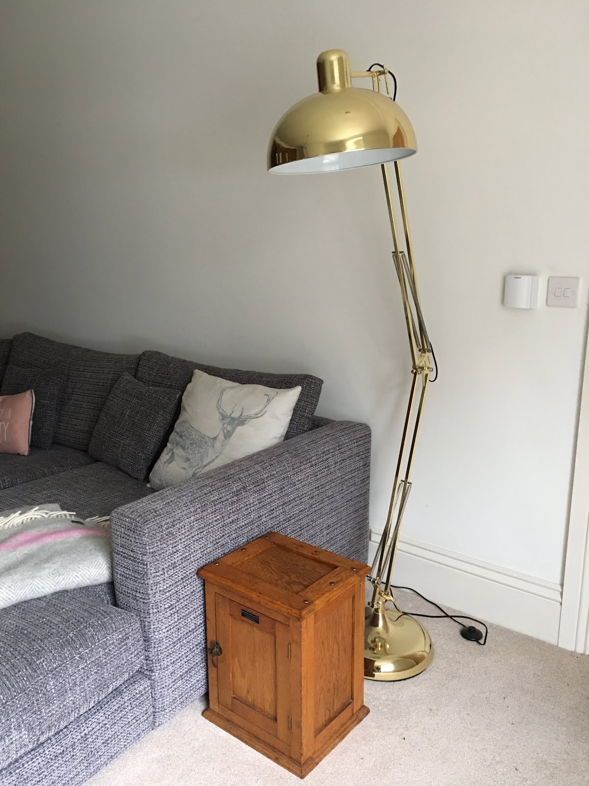 | An oversized angle poise lamp in the snug. |