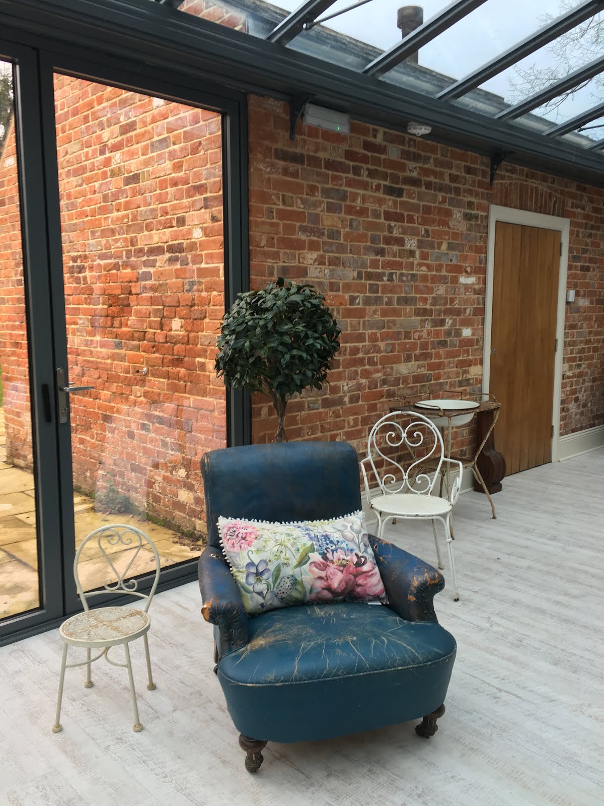 | Charming use of vintage pieces in the Conservatory. |