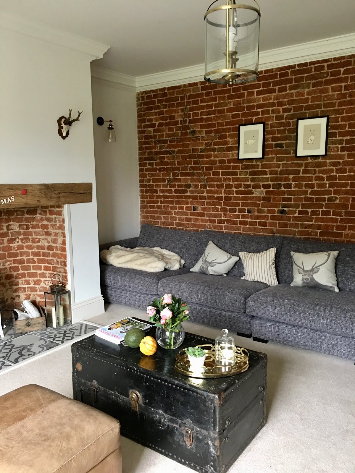 | Characterful Bare Brick with Contemporary Sectional Sofa in The Snug. |