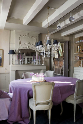 Anyway, I digress – back to the ‘Perfect Dining Room’. My predecessors at Hill House decorated the house in an immaculate but rather austere and serious fashion. The dark green paper of the walls, and heavily patterned curtains which they left in the dining room, harp back to a grand and rather Victorian style of dining, which is not my thing at all. I prefer light and airy colours in a French or Swedish, shabby chic style – with a bit of English country house thrown in. The following images (and the first image from Veranda) share the sort of vibe that inspires me, and that someday soon I hope to achieve.