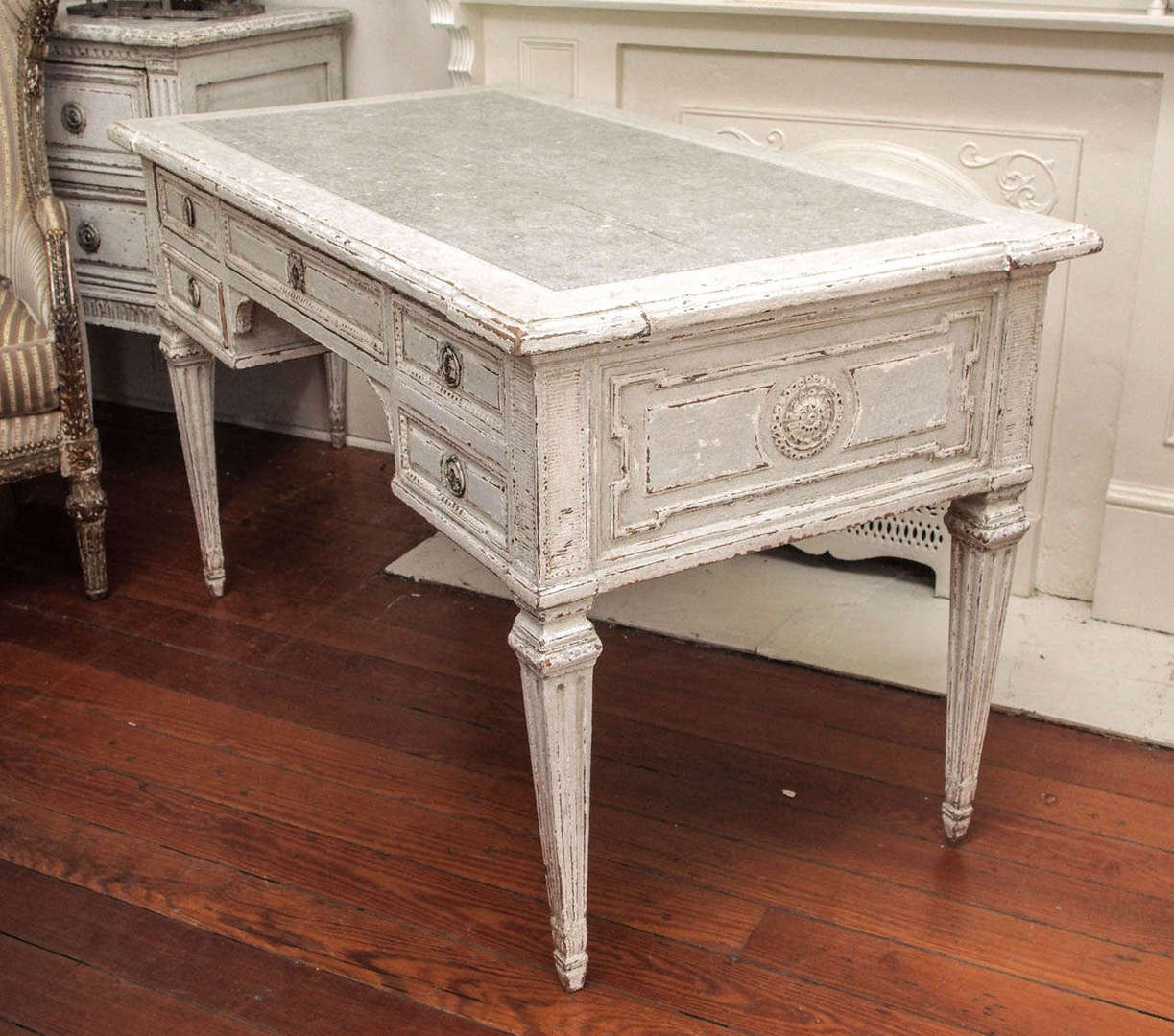I can imagine the desk flanked by this pair of Directoire Fauteuil chairs reupholstered in a faded rose elephant check or a vintage ticking…perfect for business meetings with clients.