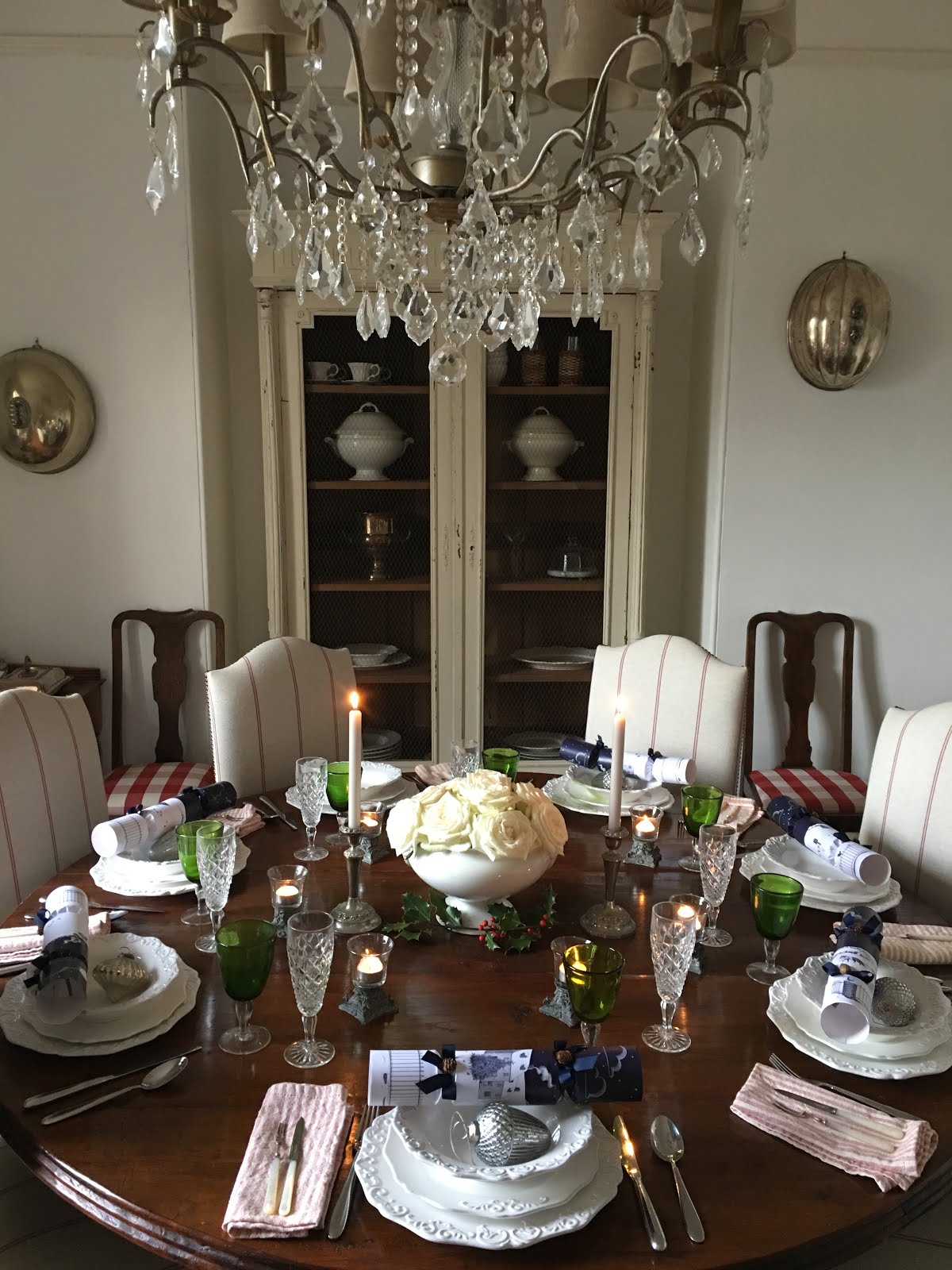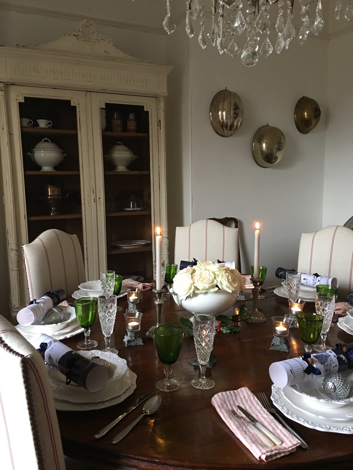 I thought that I’d pair set them against some French inspired white plates with silver cutlery, with my green hand blown glasses, and traditional champagne flutes on the side.