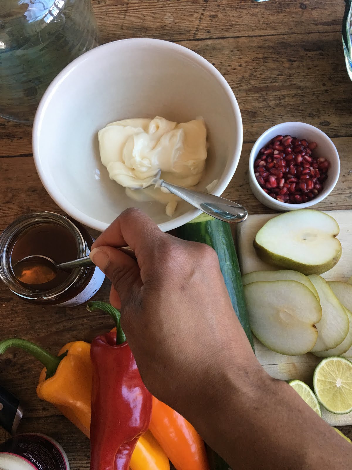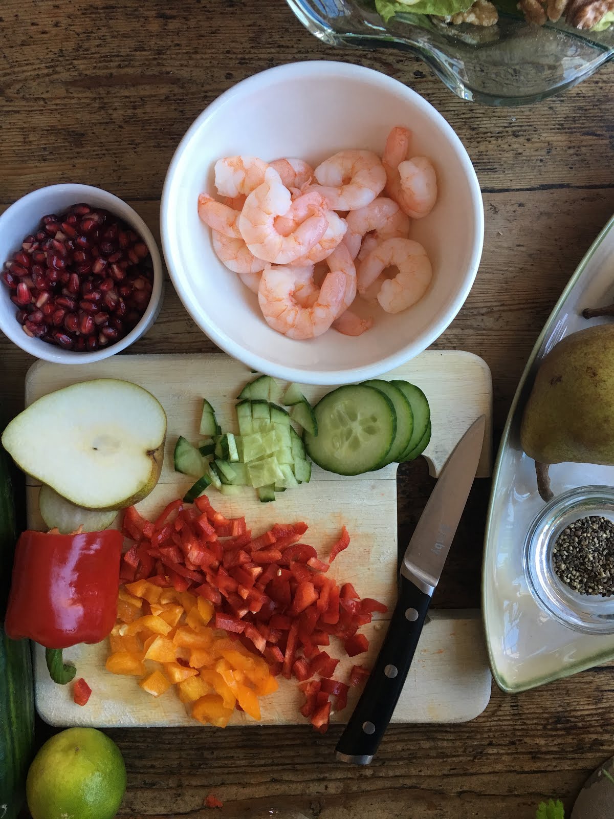 choice – in my case with the addition of sliced pears, walnuts and pomegranate