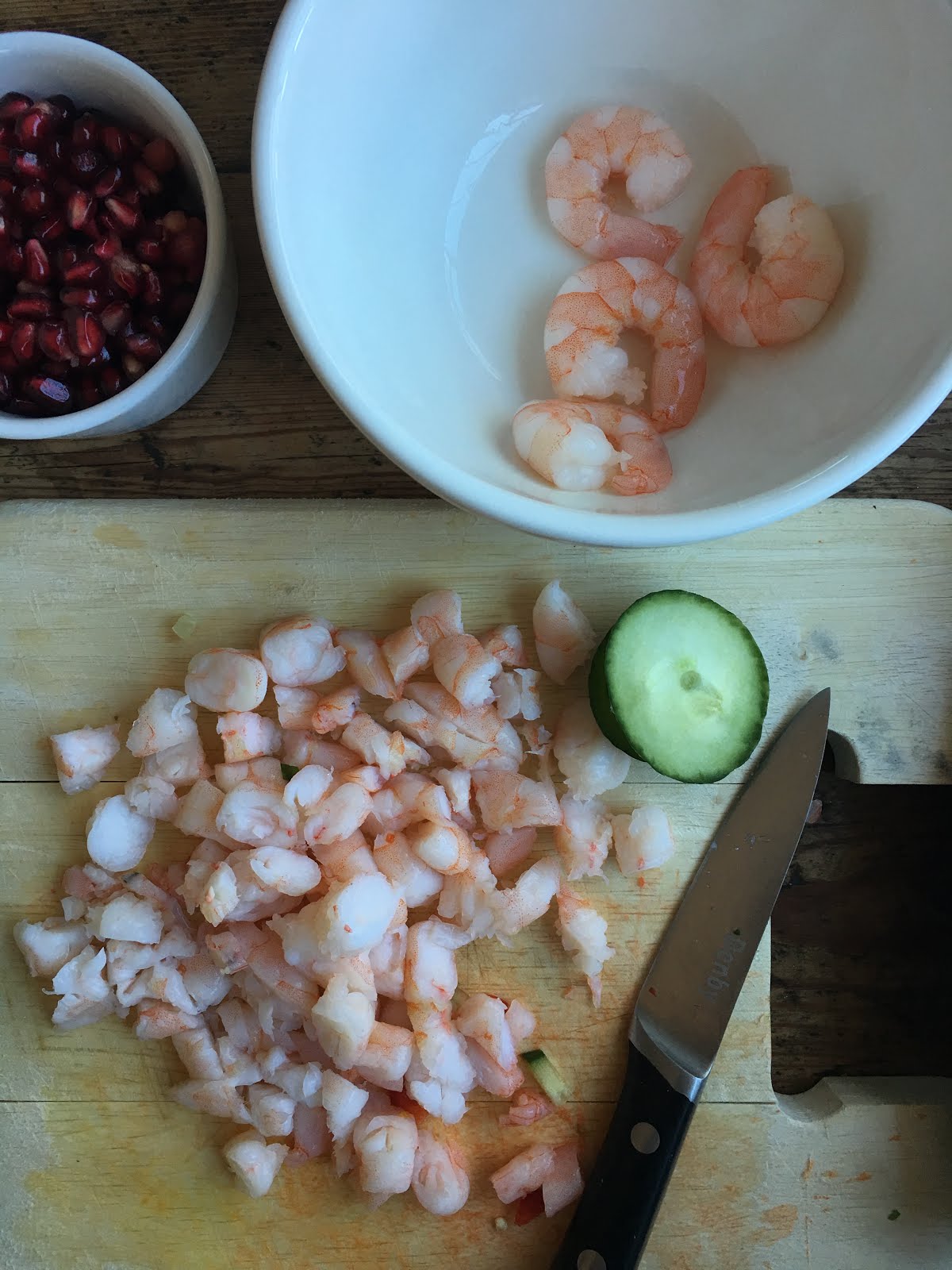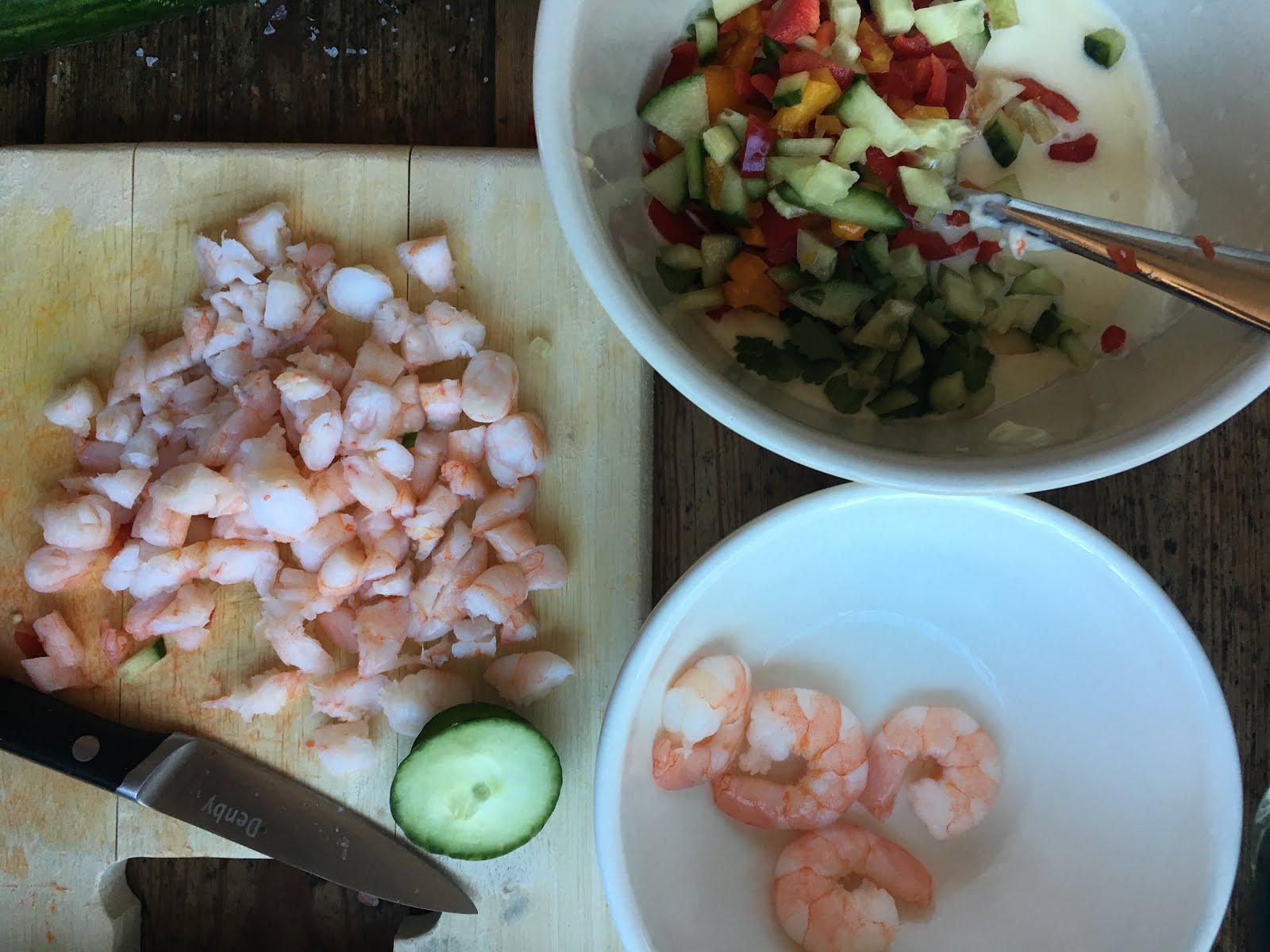 chopped prawns and diced vegetables to create a thick and chunky, but not too