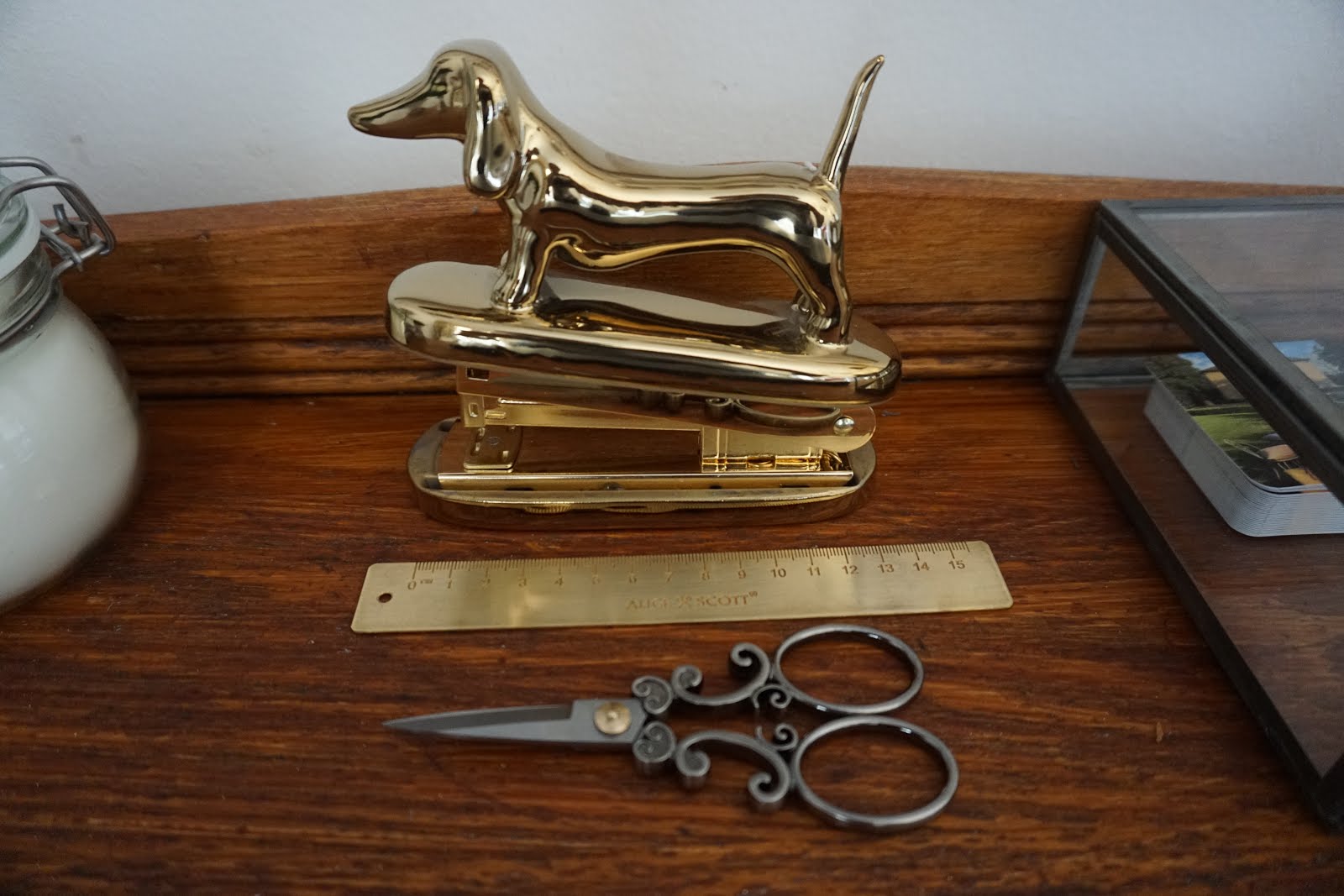 Of course, despite the thrill of a good sort out, one must always allow for the presence of a few bits of frivolity and inspirational clutter to help the creative juices to flow (Hence the addition of a stapler in the guise of a dog…). After all, as Albert Einstein once said…