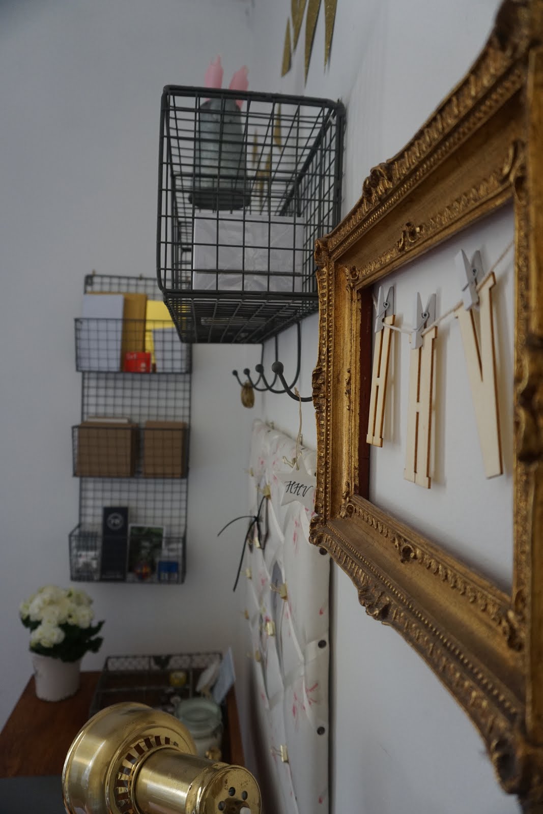 I felt that the rough coated wire would create an interesting contrast to the prettiness of the rest of the room, without causing too harsh a difference. They are both also the perfect size to hold my camera, chargers and stationary paraphernalia….