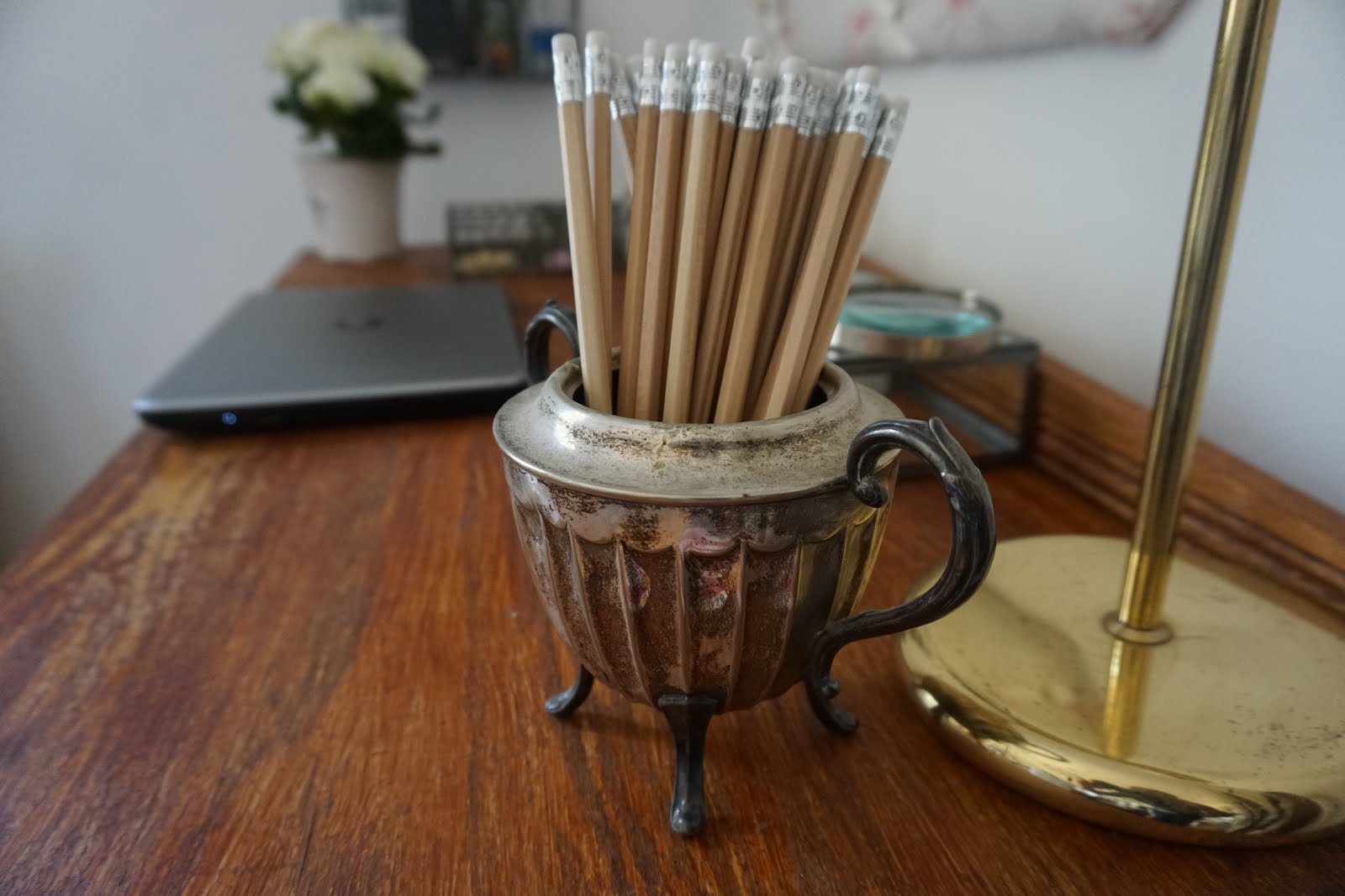 In the absence of a dedicated study of my own (the garage conversion into studio/office is on the endless list of things to complete…), I have claimed a corner of my dining room to use as my temporary ‘control centre’. This is where I sit to write, contemplate and plan. However, until earlier this week, it had also become a dumping ground for things that were either on their way back in or out of the vintage armoire. It had also become a holding bay for stray letters, candles, homeless paperwork, and pens that had passed their best, as well as the odd discarded dog chew or hair grip…Something needed to change…