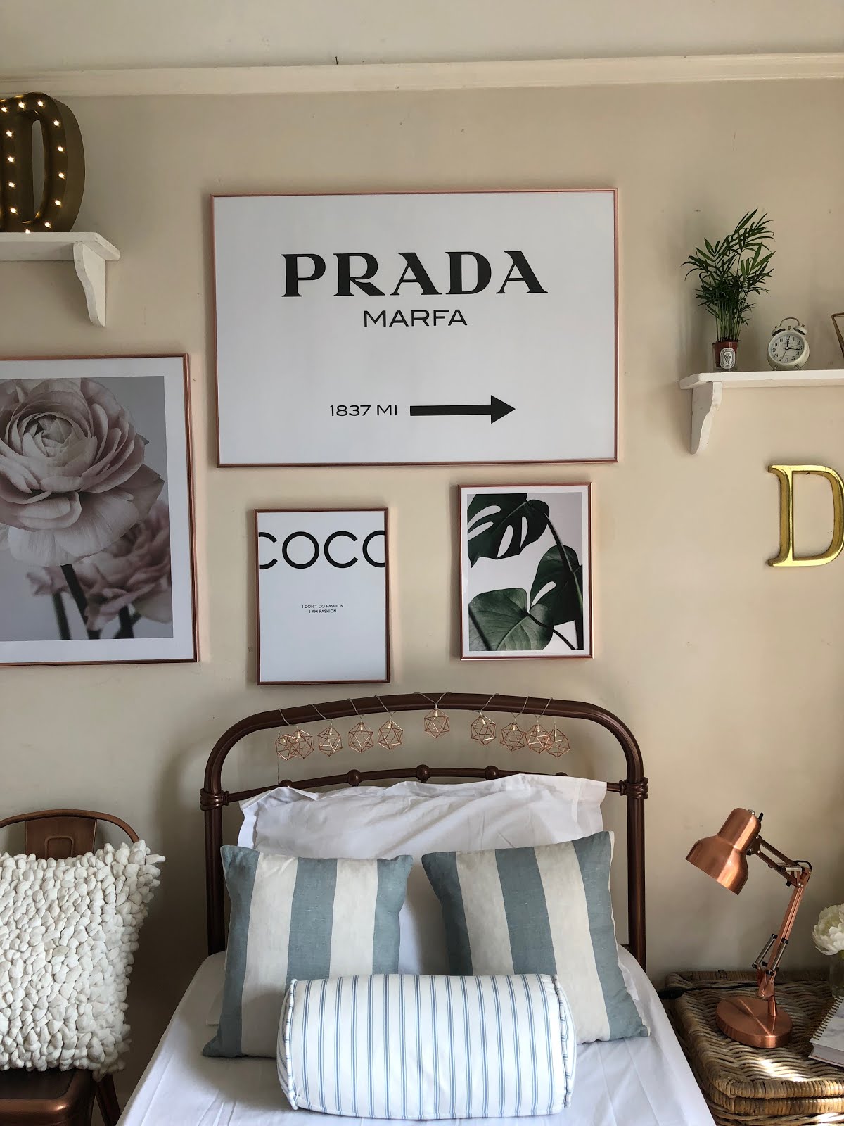 | The Finished Bedroom Featuring Desenio Art Prints. |