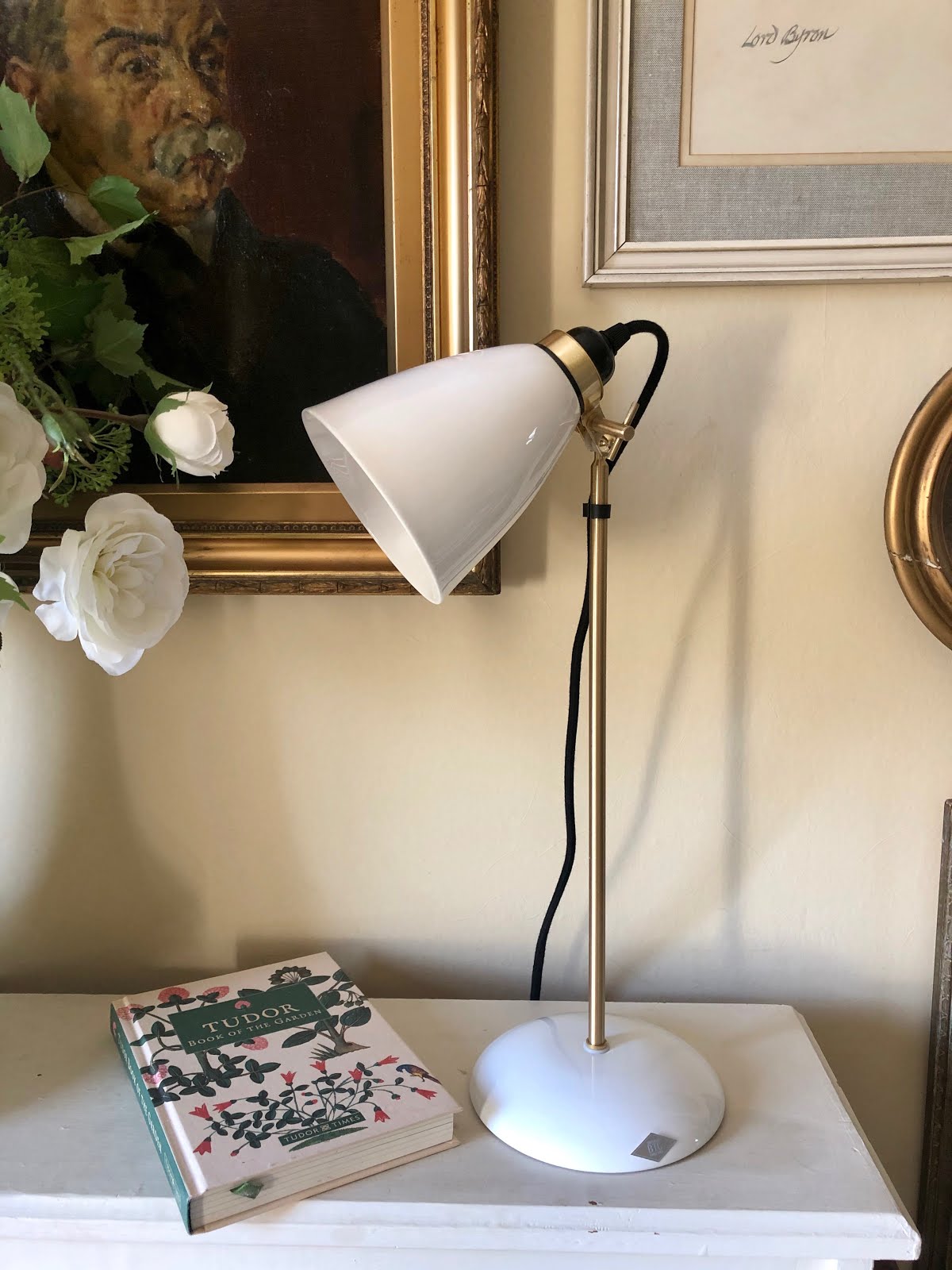 The first light ever produced in bone china – a feature which particularly appealed to me and fits in perfectly with my classic style – the now-iconic Hector has been updated with a deliciously vintage feeling satin brass stem and retro black cotton braided cable, replacing the original satin chrome and sand and taupe.